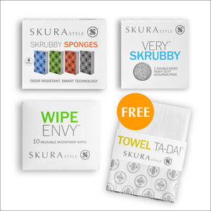 Love all of these products. My husband even loves the very scrubby pad. I am also extremely grateful for all of the cleaning tips that you have on the website. I intend to be a repeat customer. The sponges are fabulous and last so much longer than others. Thank you so much.